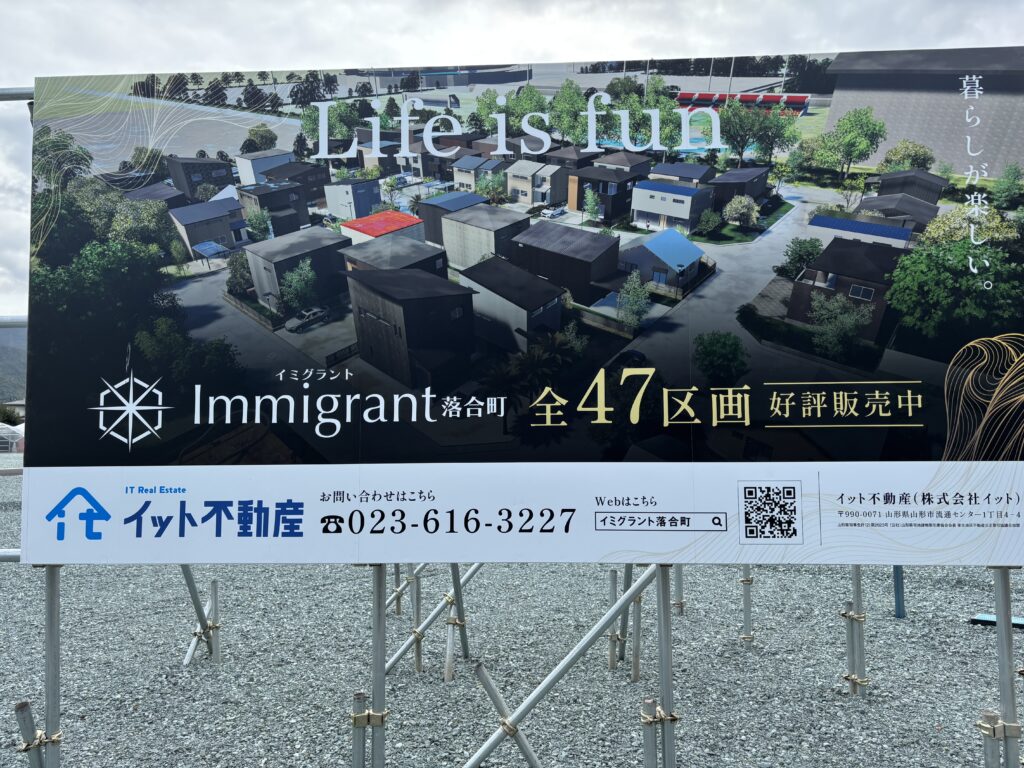 山形市落合町 全47区画分譲地「イミグラント落合町」 販売のお知らせup 物件の詳細を見る 価格 売地 所在地 山形県山形市 落合町字二口、字小河向 交通 JR奥羽本線 羽前千歳駅 徒歩18分 面積 建蔽率/容積率 60% / 150% 区画番号 現況 更地 物件番号 20250004 設備・条件 建築条件無 公営水道 排水下水 ※上下水道完備 ※令和7年12月上旬以降~引渡予定 ※本物件は、分筆登記及び地目変更登記後の引渡しとなります。(※現在、準備中) なお、本物件は「未完成物件」のため、引渡しの日程が前後する可能性がございます。予めご了承ください。